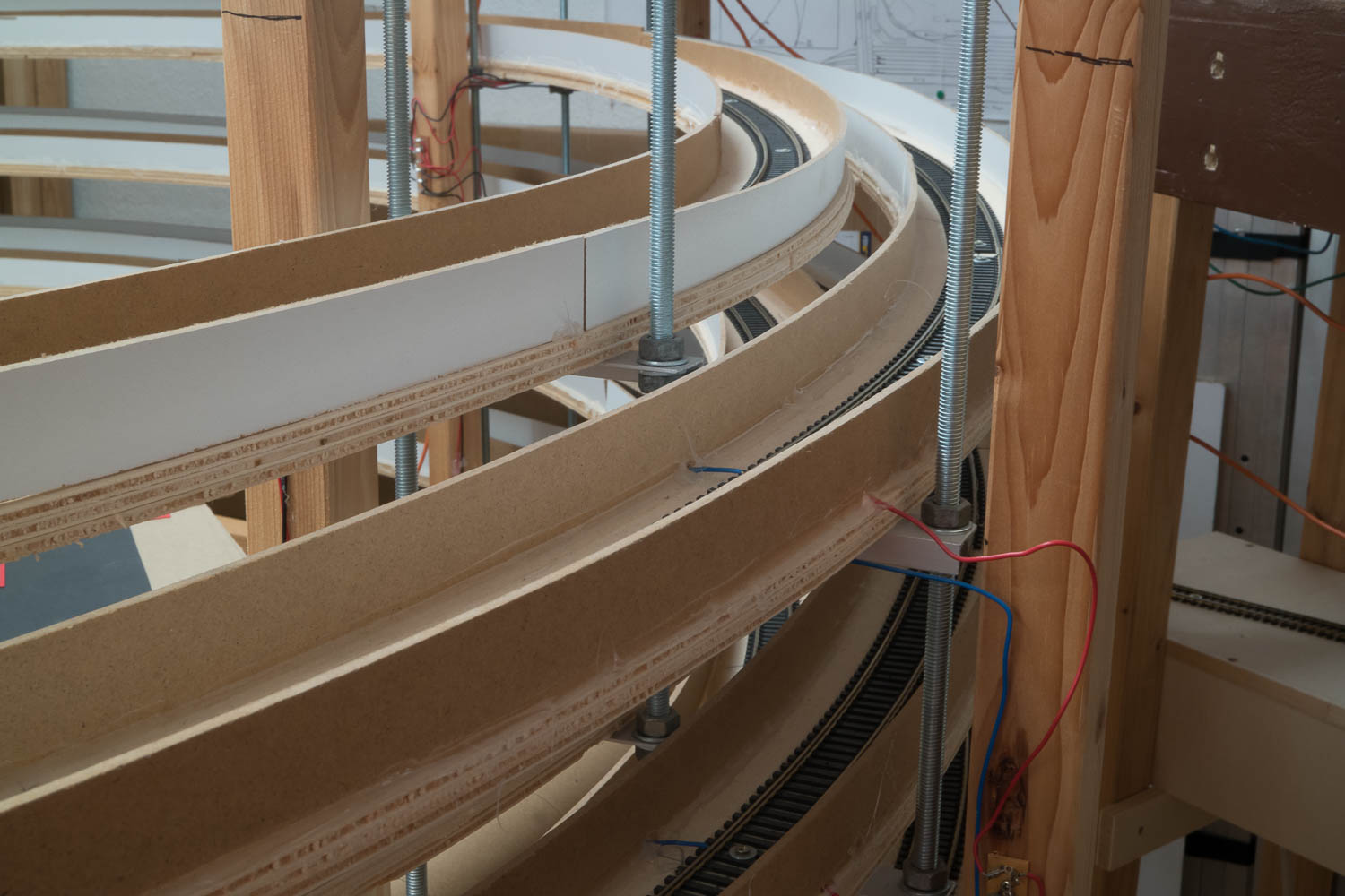 Die Wendel verbindet meine beiden Bahnhöfe Goldscheuer und Hochfeld Nord mit den jeweils darunter liegenden Schatten-bahnhöfen. Radius der beiden gegenläufigen Wendel beträgt ca 1m, also Durchmesser 2 m.